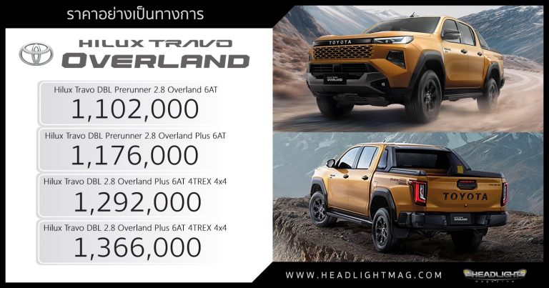 ราคาอย่างเป็นทางการ Toyota Hilux TRAVO OVERLAND : 1,102,000 – 1,366,000 บาท | รุ่นท็อปตกแต่งพิเศษ