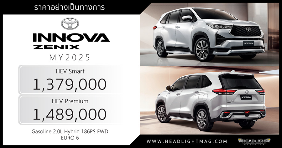 ราคาอย่างเป็นทางการ Toyota Innova ZENIX MY2025
