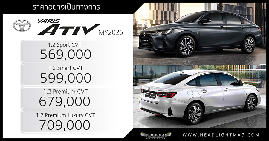 ราคาอย่างเป็นทางการ Toyota Yaris ATIV MY2026