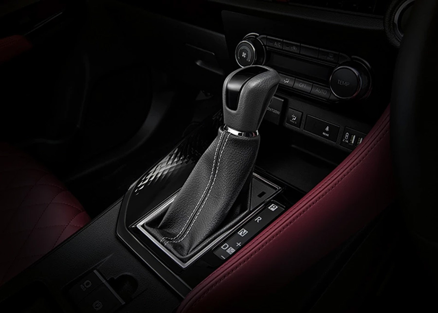 - คันเกียร์หุ้มด้วยหนัง ตกแต่งด้วย Piano Black และโครเมียม