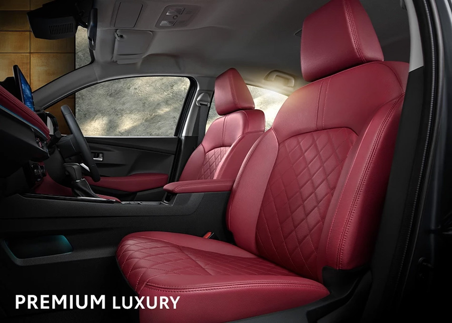 - เบาะนั่งหุ้มด้วยหนังแท้และหนังสังเคราะห์ ตกแต่งด้วยด้านสีแดง