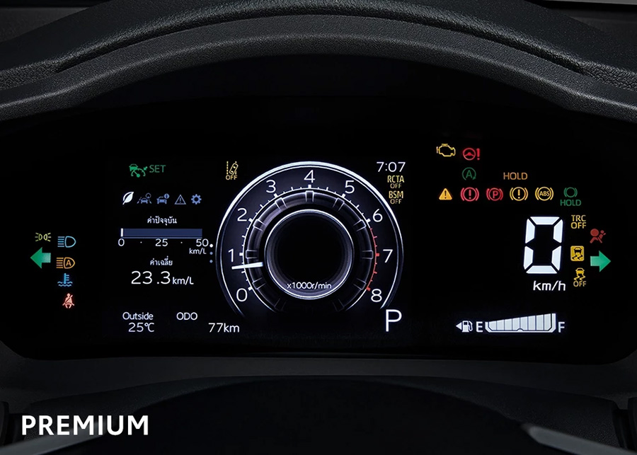 - หน้าจอแสดงข้อมูลการขับขี่แบบสี TFT ขนาด 7 นิ้ว