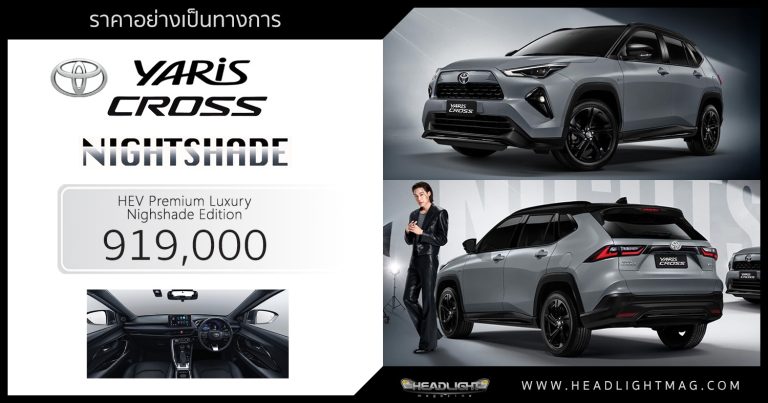 ราคาอย่างเป็นทางการ Toyota Yaris CROSS Nightshade Editi … อ่านเพิ่มเติม ราคาอย่างเป็นทางการ Toyota Yaris CROSS Nightshade Edition : 919,000 บาท | ตกแต่งพิเศษ โทนสีดำ