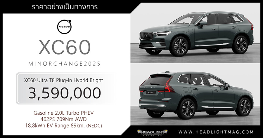 • XC60 Ultra T8 Plug-in Hybrid Bright : 3,590,000 บาท
