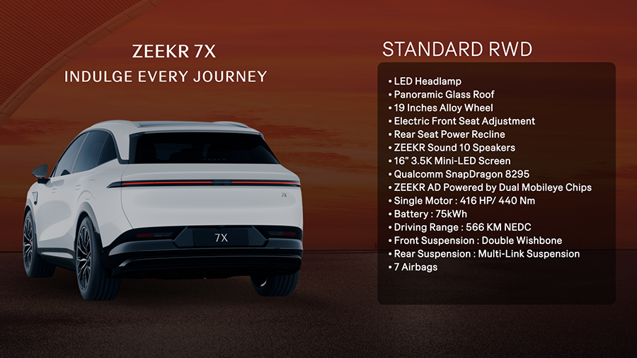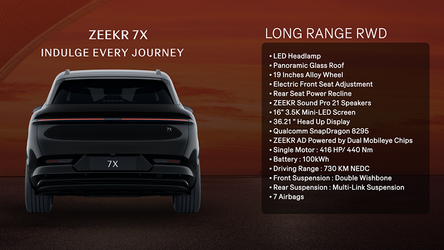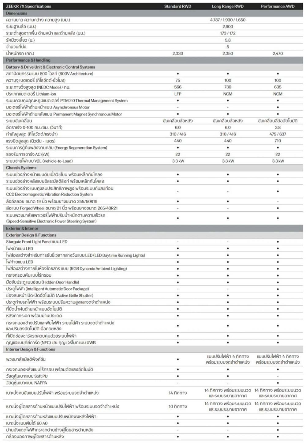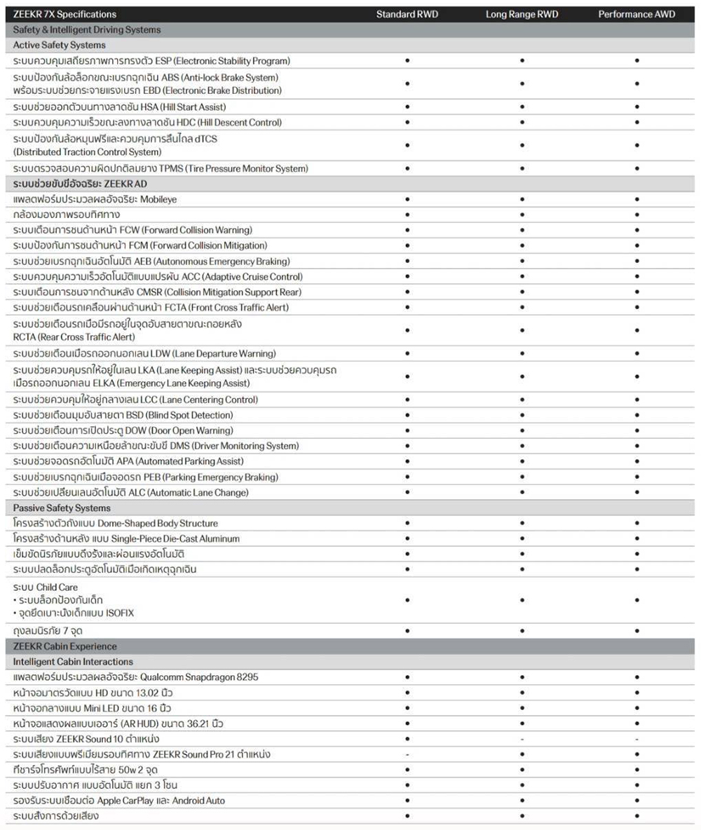 ตารางสเป็คและอุปกรณ์มาตรฐานของ Zeekr 7X / Brochure