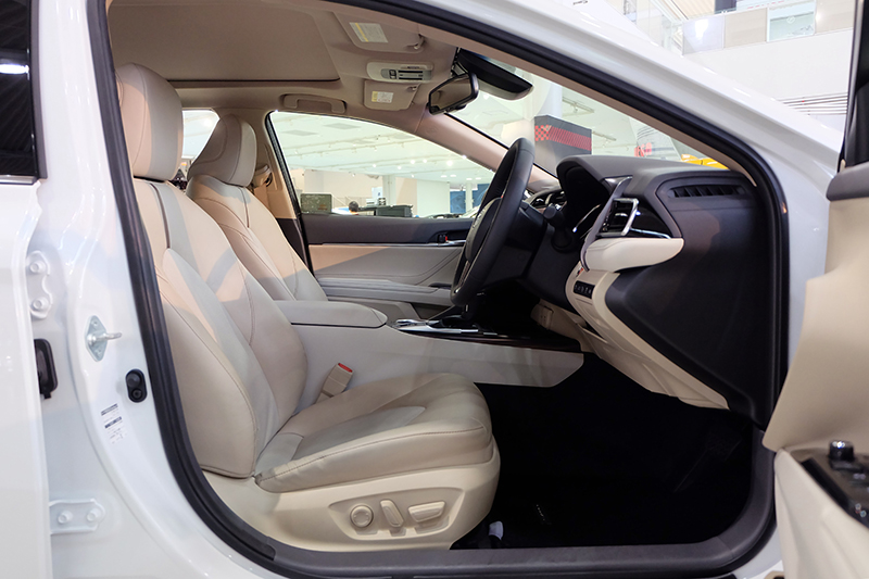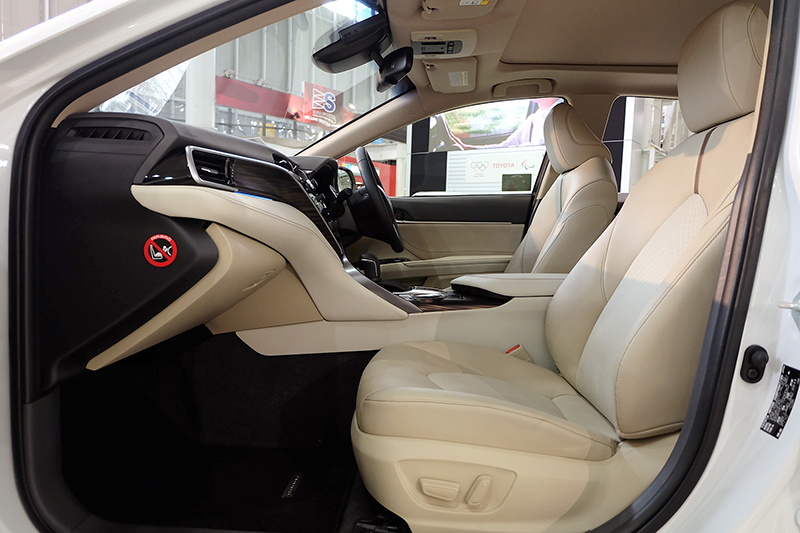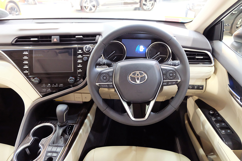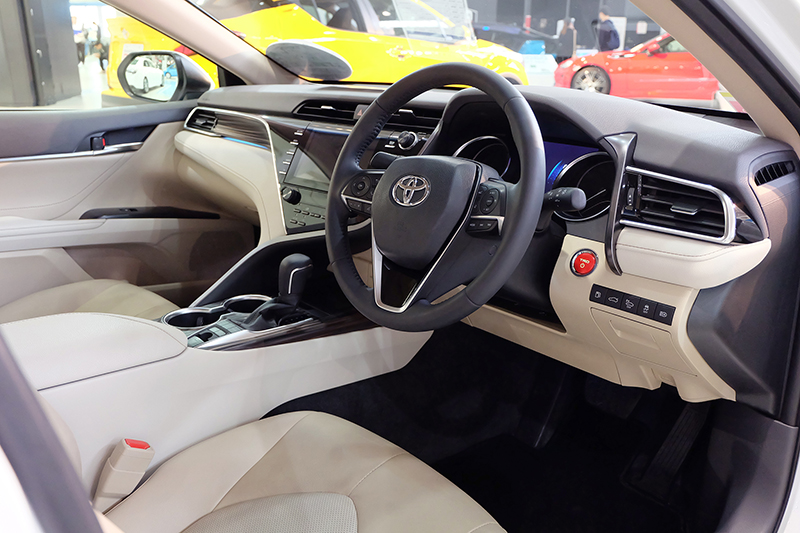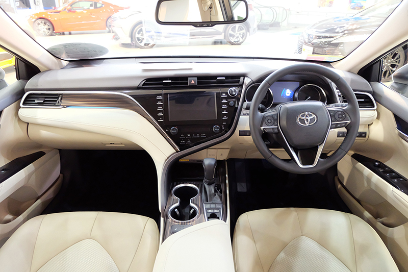 ภายในห้องโดยสารของ All NEW Toyota Camry ในส่วนของงานออกแบบ ถือว่ามีพัฒนาการดีขึ้นมากจากรุ่นเดิม ไม่ว่าจะเป็นรายละเอียดการตกแต่งต่างๆ หรือ ฟังก์ชั่นการใช้งาน (เช่น ก้าน Cruise Control ย้ายไปเป็นปุ่มกดบนพวงมาลัยแล้ว) และ มีการเพิ่มไฟสร้างบรรยากาศ Ambient Light บริเวณแดชบอร์ดด้านหน้า ในเวอร์ชั่นญี่ปุ่น มีการติดตั้งหลังคากระจก Panoramic Sunroof อีกด้วย