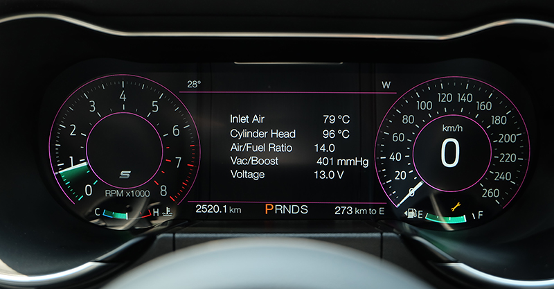 เครื่องยนต์เบนซิน 4 สูบ DOHC Direct Injection Ti-VCT ขนาด 2.3 ลิตร 2,264 ซีซี. พ่วงเทอร์โบ กระบอกสูบ x ระยะช่วงชัก : 87.55 x 94.0 มิลลิเมตร อัตราส่วนกำลังอัด 9.5 : 1 กำลังสูงสุด 300 แรงม้า ที่ 5,500 รอบ/นาที แรงบิดสูงสุด 475 นิวตันเมตร ที่ 3,000 รอบ/นาที จับคู่กับเกียร์อัตโนมัติ 10 จังหวะ ขับเคลื่อนล้อหลัง พร้อม Limited Slip Differential ปล่อย CO2 217 g./km.