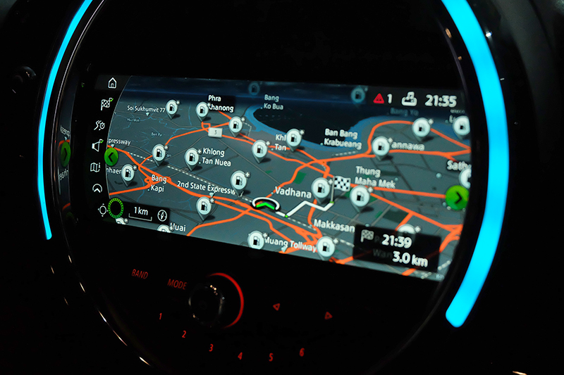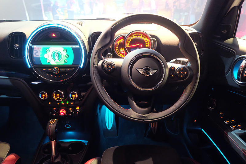 - พวงมาลัย JCW หุ้มด้วยหนัง พร้อมปุ่มควบคุมเครื่องเสียง