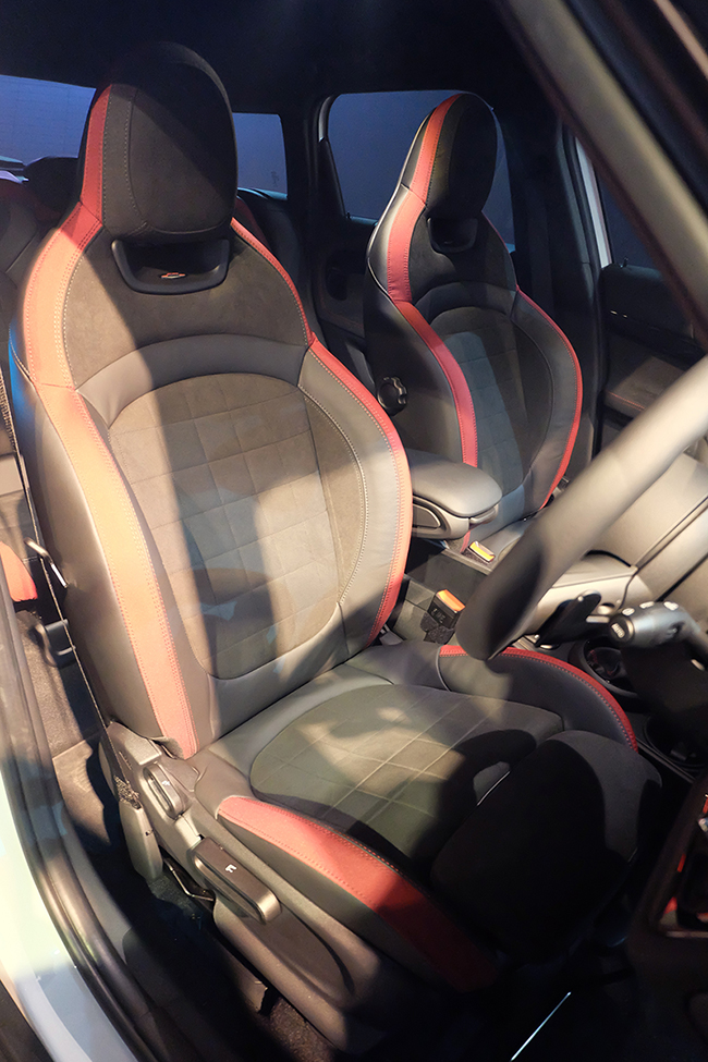 - เบาะนั่ง JCW Sport Seats หุ้มด้วยหนัง สลับหนังกลับ Dinamica สีดำ