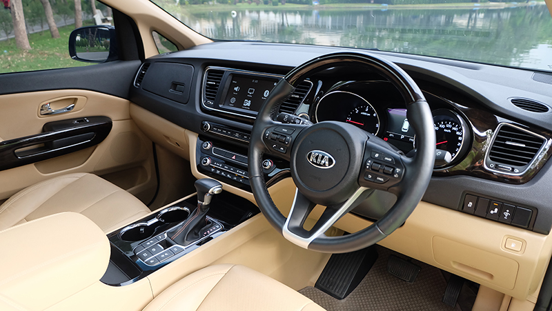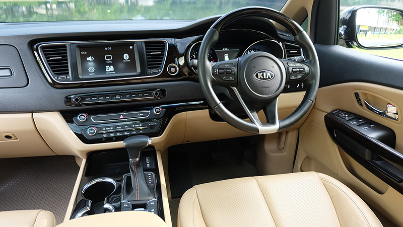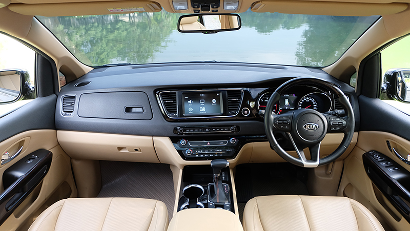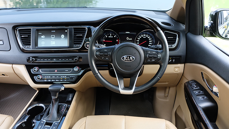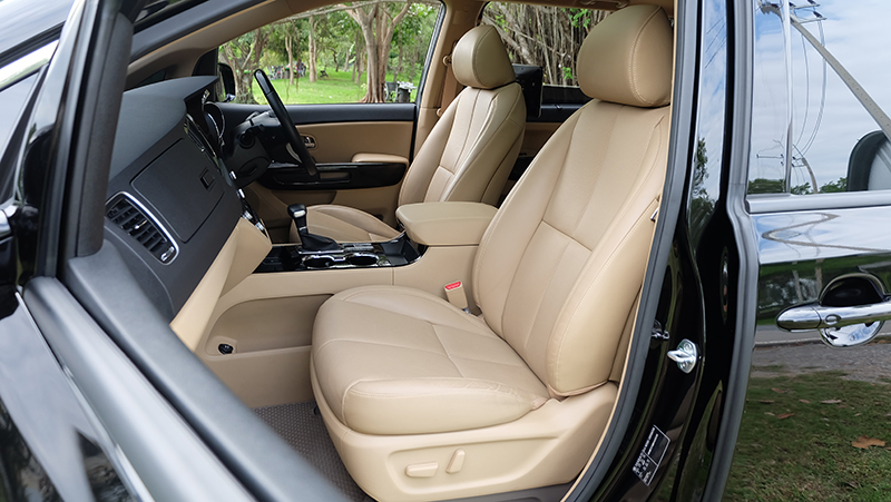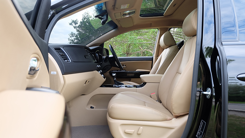 ในเรื่องการโดยสารนั้น เบาะคู่หน้า จัดว่ามีส่วนรองนั่งที่ค่อนข้างสั้น น่าจะพอดีกับคนไทยส่วนใหญ่ ยกเว้นคนที่ตัวสูง 180 cm. ขึ้นไป หรือ มีขายาวจะรู้สึกว่าส่วนรองน่องขาดไปนิด เบาะคนขับมี Memory Seat เพิ่มมาให้แล้ว ส่วนเบาะนั่งแถวสอง จะมีความสบายแค่พอประมาณ เนื่องจาก Grand Carnival รุ่นนี้ ต้องออกแบบให้รองรับผู้โดยสาร 11 ที่นั่ง เพื่อผลทางด้านภาษี ตัวเบาะจึงสบายยังไม่สุด คนตัวใหญ่นั่งแล้วจะรู้สึกล้นด้านข้าง ส่วนเบาะแถวสามนอกจากไม่มีพนักเท้าแขนวงในแล้ว พนักแขนรอบนอกก็ไม่มี ต้องเท้ากับแผงข้างของรถเอา เบาะแถวที่ 4 ถ้าไม่จำเป็นก็คงไม่มีใครอยากนั่ง ทำมาเพื่อเหตุผลทางภาษีล้วนๆ แต่ KIA จะได้เปรียบคู่แข่งตรงที่เบาะแถวที่ 4 พับแล้ว ราบเรียบไปกับพื้นรถ ต่างจากรุ่นอื่นที่ต้องยกขึ้น หรือ ทำได้แค่เลื่อนไปชิดด้านหน้า ซึ่งทำให้ KIA มีพื้นที่วางสัมภาระด้านหลังเหลือเฟือ หากใช้งานเพียงแค่เบาะ 3 แถว