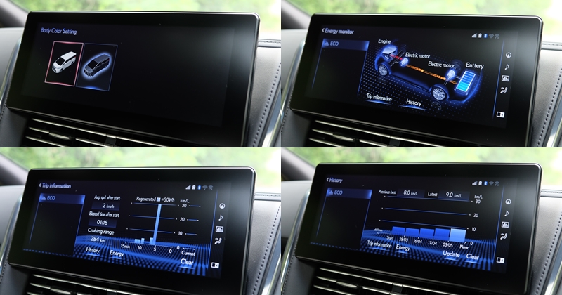 เมื่อเครื่องยนต์ทำงานร่วมกับมอเตอร์ไฟฟ้า พละกำลังรวม 197 แรงม้า แบตเตอรี่ Nickel-Metal Hydride 6.5 Ah 244.8V 204 Cell ส่งกำลังผ่านเกียร์ E-CVT ขับเคลื่อน 4 ล้อ E-Four