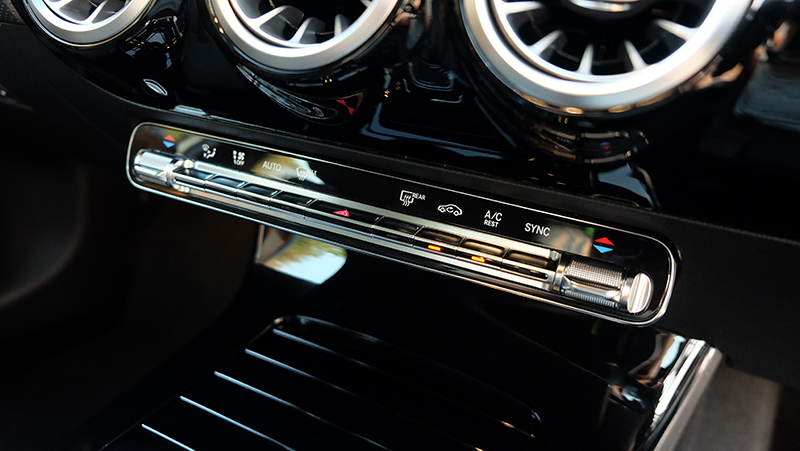 การออกแบบ และการตกแต่งห้องโดยสารของ A 200 Sedan AMG Dynamic คือจุดเด่นของตัวรถอีกข้อหนึ่ง ที่นำหน้าคู่แข่งใน Segment เดียวกัน ด้วยดีไซน์ที่ประยุกต์มาจากรุ่นพี่ได้อย่างลงตัว มาตรวัดแบบจอสีเป็นแผงยาวจากด้านขวา ถึง คอนโซลกลางแบบเดียวกับ E-Class รุ่นที่เป็น Widescreen Cockpit เมื่อตะวันลับขอบฟ้า แสง Ambient Light ที่ปรับได้ 64 สี ภายในห้องโดยสาร มีส่วนช่วยให้บรรยากาศดูไฮโซมาก ชนิดที่รุ่นพี่ยังต้องค้อนขวับ บวกกับวัสดุที่ใช้ตกแต่งคล้าย Hairline Aluminium กระทบกับแสง สวยอย่างไร้ที่ติ