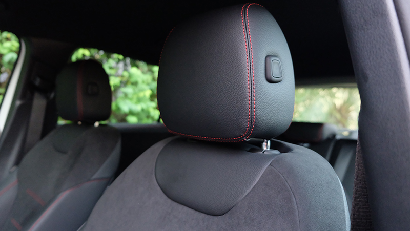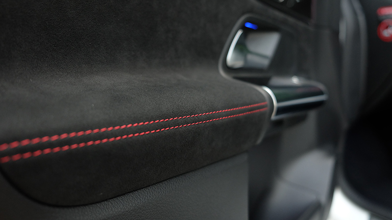 - เบาะนั่งหุ้มด้วยหนัง ARTICO สลับ DYNAMICA microfibre สีดำ ตกแต่งด้วยตะเข็บด้ายสีแดง