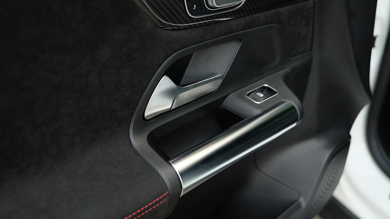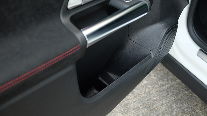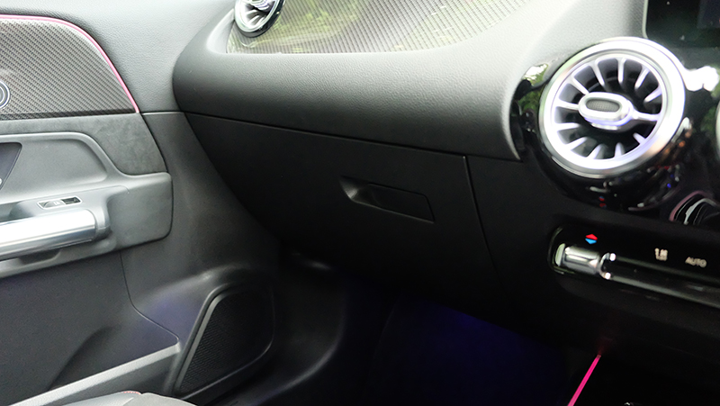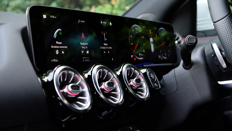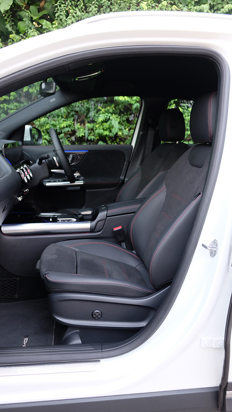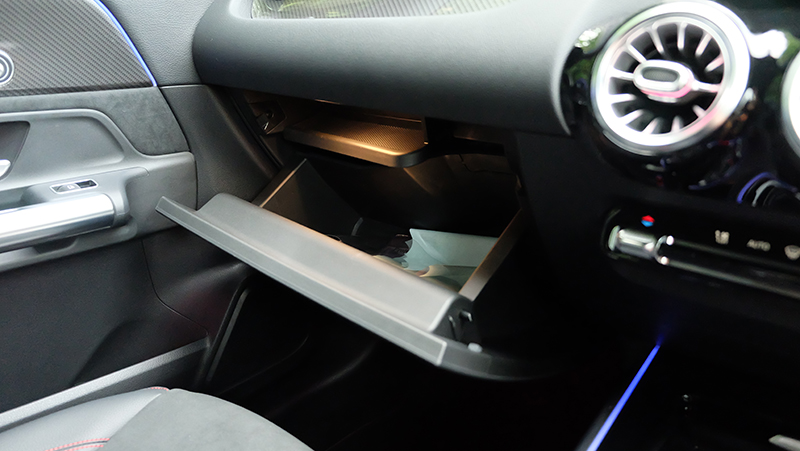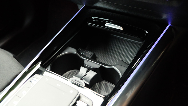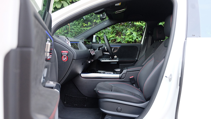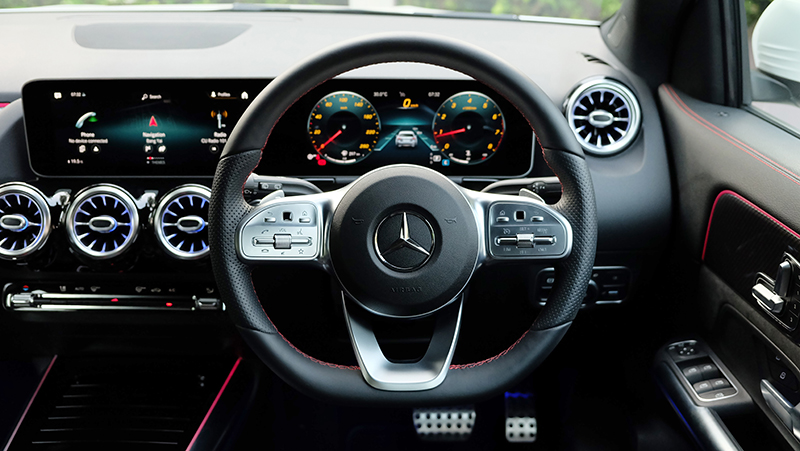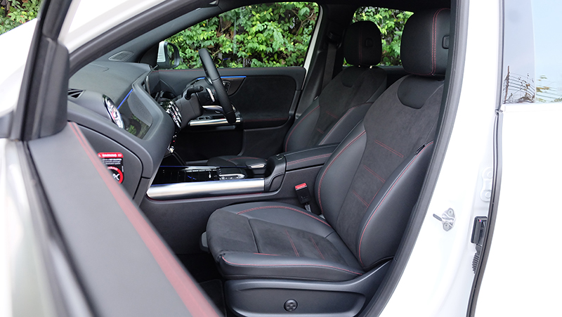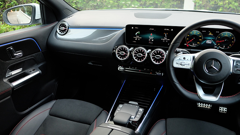 ภายในห้องโดยสารก็ดีไซน์ให้แตกต่างจาก A-Class / GLB จะมีก็แต่พวงมาลัย และ หน้าจอ Widescreen Cockpit ขนาด 10.25 นิ้ว และ สั่งงานด้วยเสียง MBUX แผงประตูก็ดีไซน์ให้ต่างกัน เมื่อเทียบกับรุ่นเดิม GLA รุ่นใหม่นี้ กว้างขึ้น โปร่งขึ้นกว่าเดิมแบบชัดเจน ไม่ว่าจะเป็นพื้นที่ Headroom เหนือศีรษะ เหลือเยอะขึ้นแบบรู้สึกได้ทันทีที่เข้าไปนั่ง เข้าไปใกล้ความเป็น SUV มากกว่ารุ่นที่แล้ว นอกจากนี้ไฟ Ambient Light 64 สี ทำให้ห้องโดยสารดูน่าตื่นตาตื่นใจกว่าคู่แข่งทุกรุ่นในตลาด