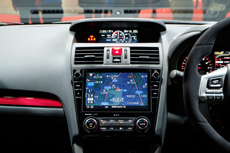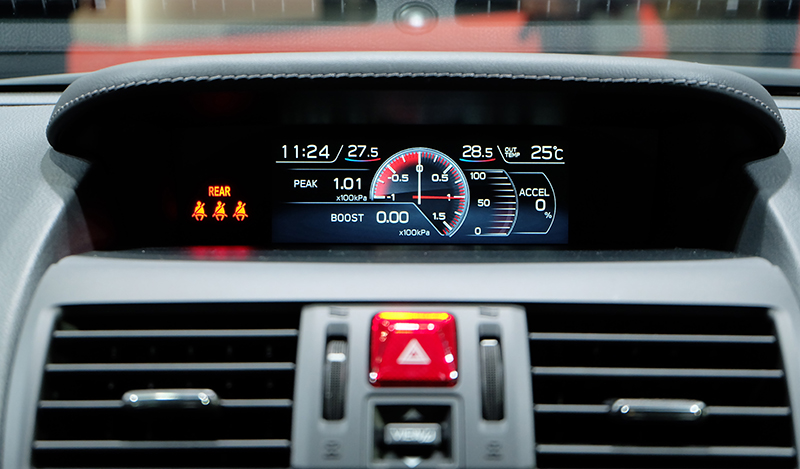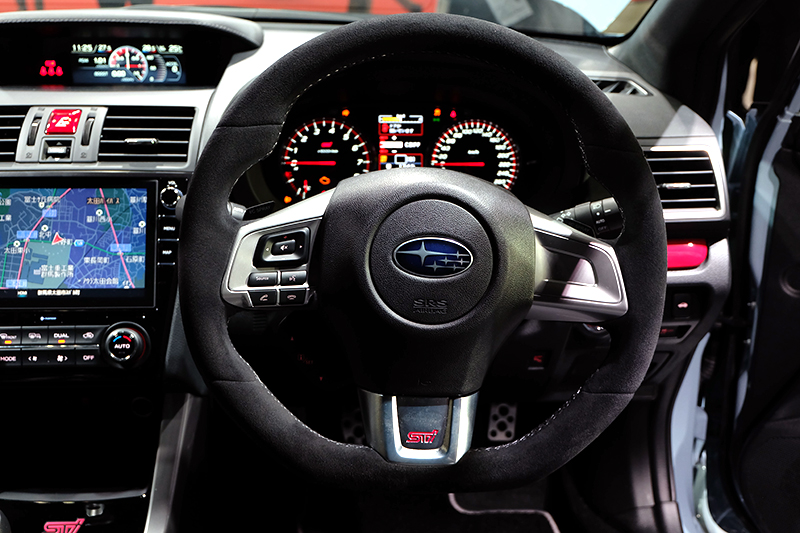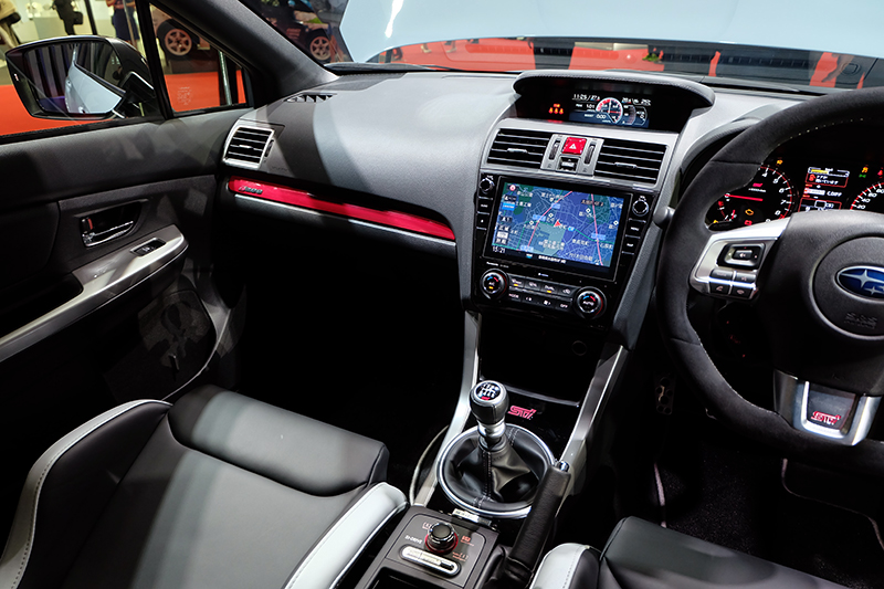 • จานเบรกเจาะรูขนาด 18 นิ้ว พร้อมคาลิปเปอร์สีเงิน ตรา STI 6 พอตในด้านหน้า และ 2 พอตในด้านหลัง จาก Brembo