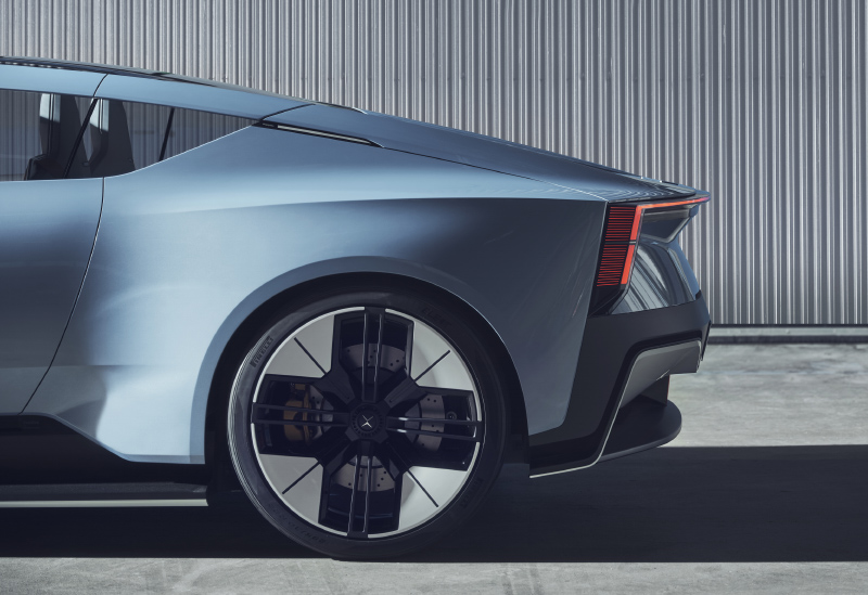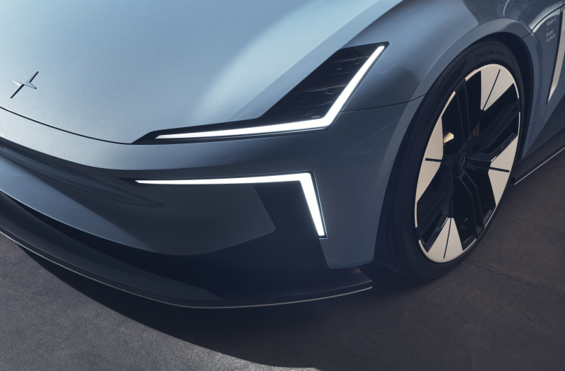 แน่นอนว่า Polestar ตั้งใจให้เป็นภาคต่อของงานออกแบบ Precept Concept ด้วยตัวถังที่กว้างและแบนยาว รวมไปถึงเส้นสายที่สืบต่อกันมา โดยมาในรูปแบบที่นั่ง 2+2 ตำแหน่ง ระยฐานล้อยาว แต่ระยะ Overhang สั้น เน้นการไหลเวียนทางอากาศที่ดีตลอดคัน ไฮไลท์อยู่ที่ไฟท้ายทรงเส้นยางที่หักมุมเข้ากับด้านมุมท้ายรถช่วยลดการไหลวนปั่นป่วนของกระแสลมที่ด้านหลังตัวรถได้ โดยภาพรวมออกมาไม่ดุกร้าวจนเกินไป ยังคงไว้ซึ่งแนวทางรถไฟฟ้าของค่ายได้ดี