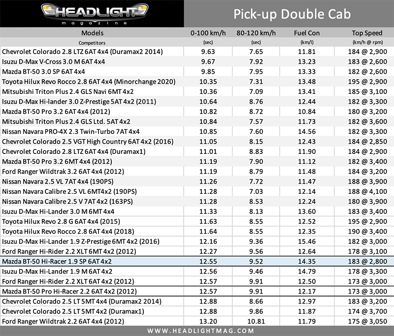 เครื่องยนต์รหัส RZ4E-TC ดีเซล 4 สูบ DOHC 16 วาล์ว 1.9 ลิตร 1,898 ซีซี กระบอกสูบ x ช่วงชัก : 80.0 x 94.4 มิลลิเมตร กำลังอัด 16.5 : 1 ฉีดจ่ายเชื้อเพลิงแบบ Direct Injection ผ่านราง Common-Rail พ่วงระบบอัดอากาศ Turbocharger กำลังสูงสุด 150 แรงม้า (PS) ที่ 3,600 รอบ/ต่อนาที  แรงบิดสูงสุด 350 นิวตันเมตร (35.69 ก.ก.-ม.) ที่ 1,800 – 2,600 รอบ/นาที จับคู่กับเกียร์อัตโนมัติ 6 จังหวะ ขับเคลื่อนล้อหลัง