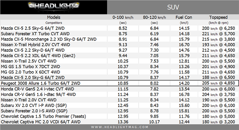 ตารางเปรียบเทียบกับคู่แข่งใน Segment ที่ใกล้เคียง