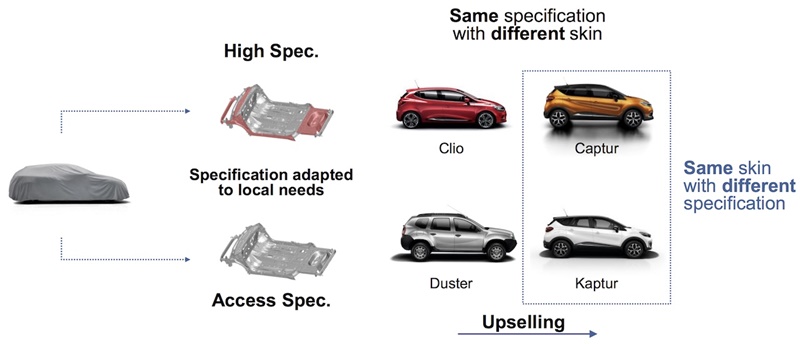 Renault C-Crossover สไตล์ Coupe ยังคงดำเนินกลยุทธ์การพัฒนาตัวรถที่มีสเป็คแตกต่างไปตามภูมิภาค ได้แก่ รุ่นสเป็คสูงสำหรับประเทศพัฒนาแล้ว และสเป็คปานกลาง พอใช้งานได้จะเหมาะสำหรับตลาดเกิดใหม่