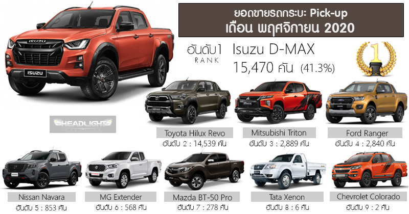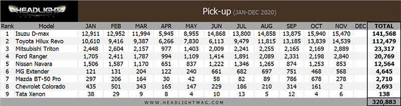ยอดขายรวมรถกระบะ Pick-up Truck เดือน มกราคม – พฤศจิกายน 2020 รวม 320,883 คัน