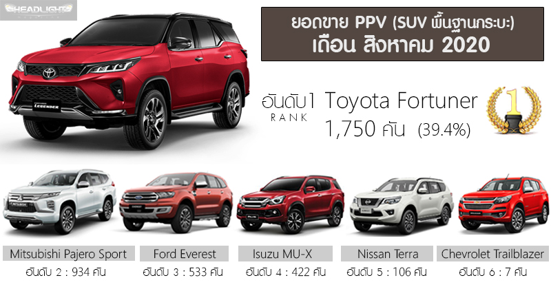 Sales Report ยอดขายรถยนต์ กลุ่ม PPV (SUV พื้นฐานกระบะ) : เดือน มกราคม – สิงหาคม 2020