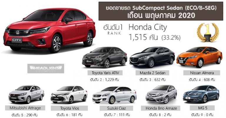 Sales Report : ยอดขายรถ SubCompact Sedan (ECO/B-SEG) เดือน พฤษภาคม 2020
