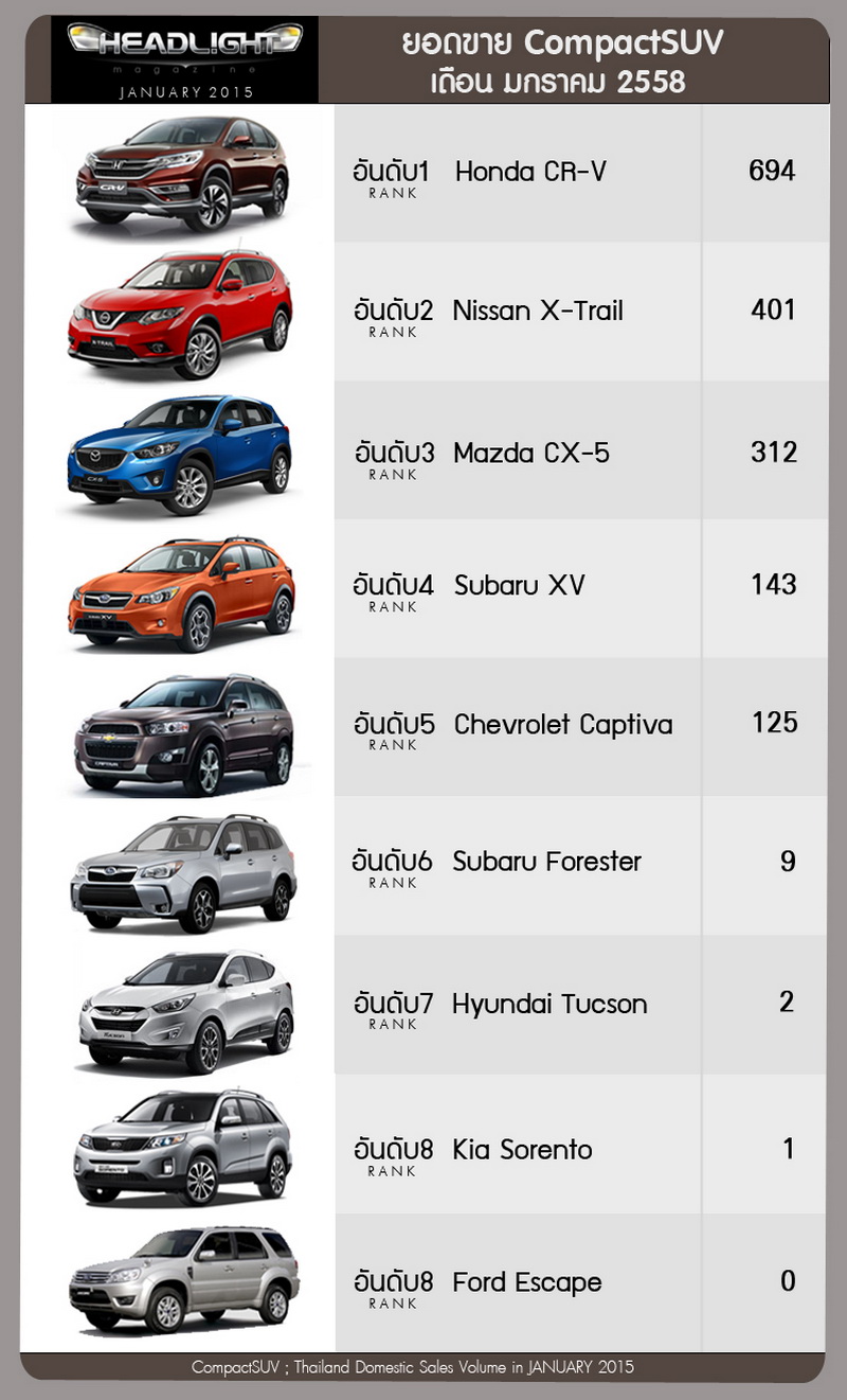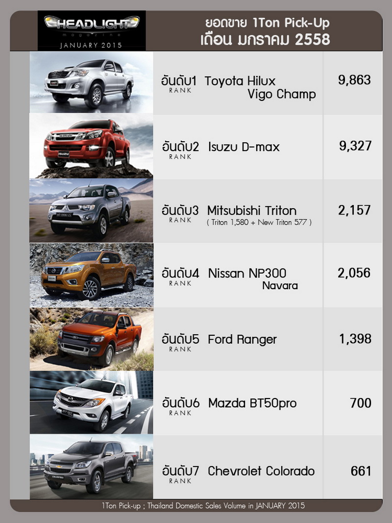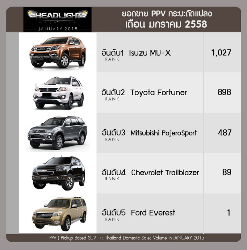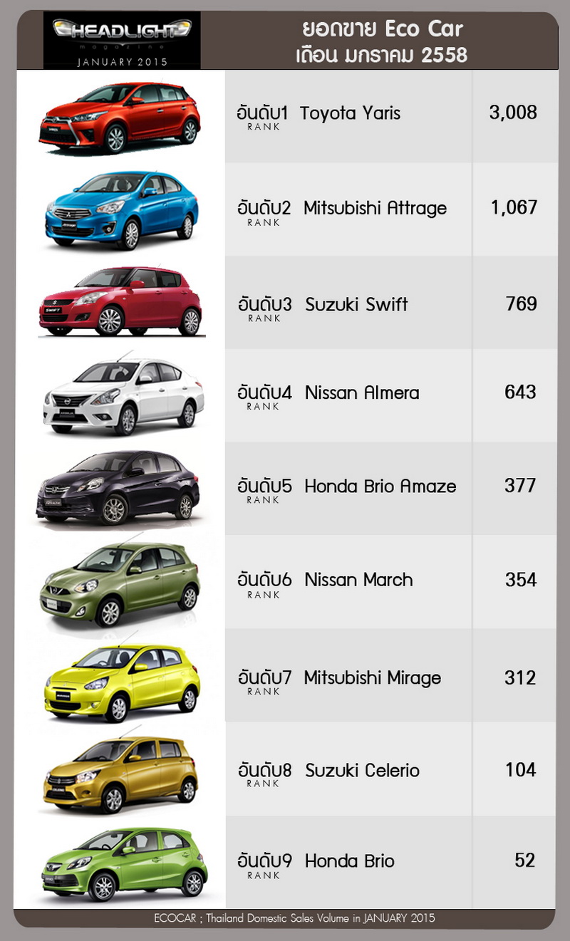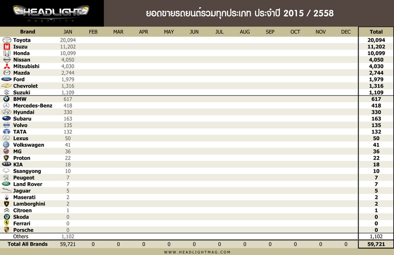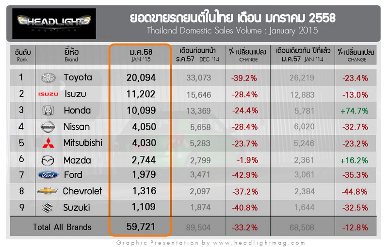 รายงานยอดขายรถยนต์ภายในประเทศ เดือนมกราคม 2558