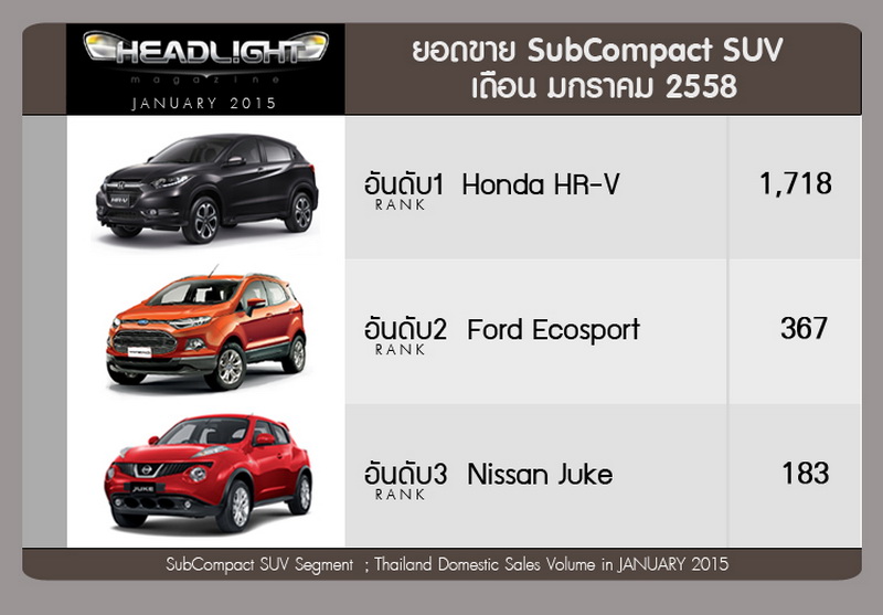 ยอดขายรถยนต์กลุ่ม B-SUV(SubCompact SUV/Crossover)