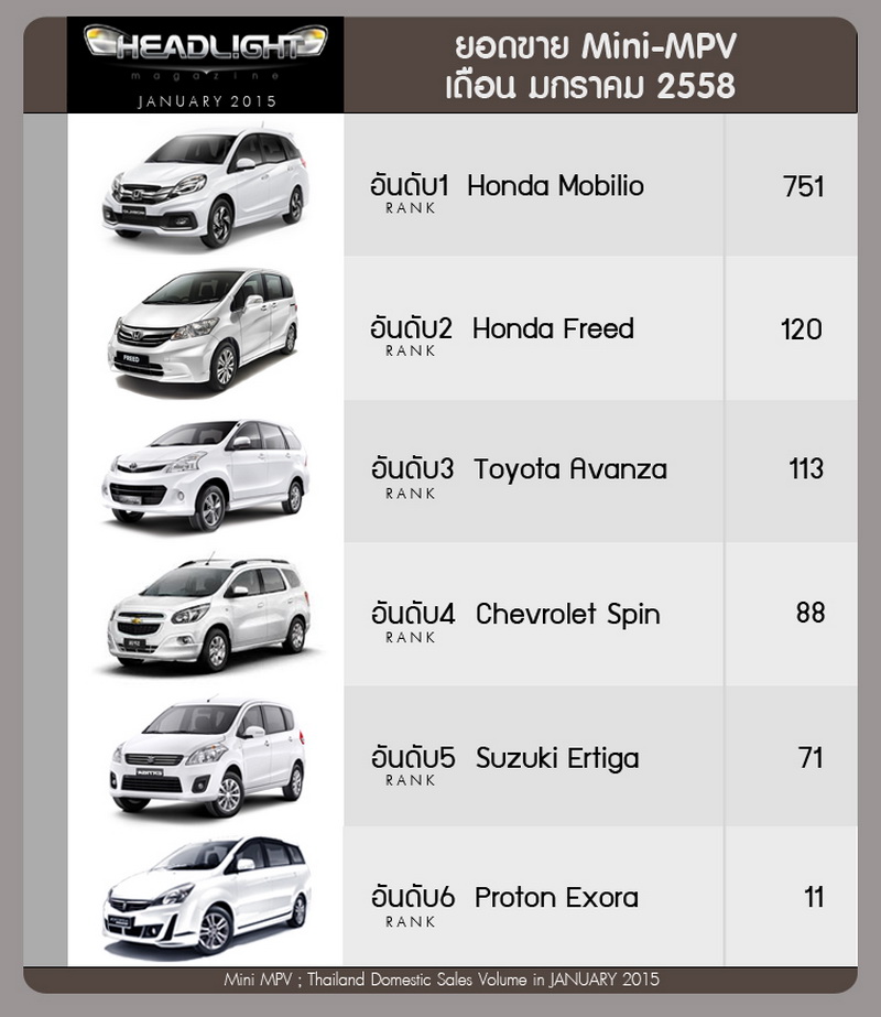 ยอดขายรถยนต์กลุ่ม Mini MPV