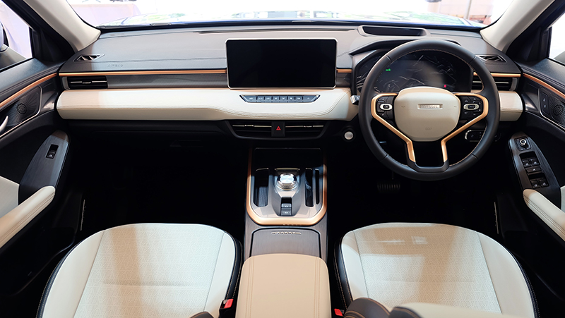 - ภายในห้องโดยสาร โทนสีเบจ และ สีดำ