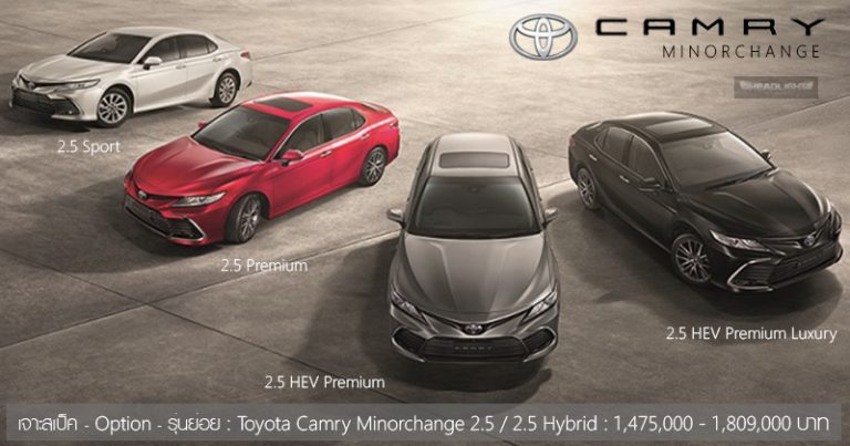 เจาะสเป็ค – Option – ราคา Toyota Camry Minorchange ทั้ง 4 รุ่นย่อย : 1,475,000 – 1,809,000 บาท