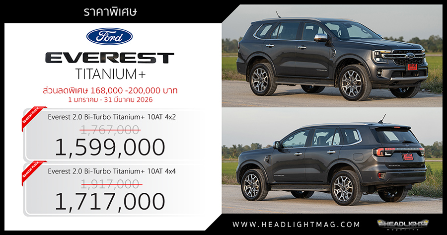 1,767,000 บาท1,599,000 บาท - Everest 2.0 Bi-Turbo Titanium+ 10AT 4×4 :