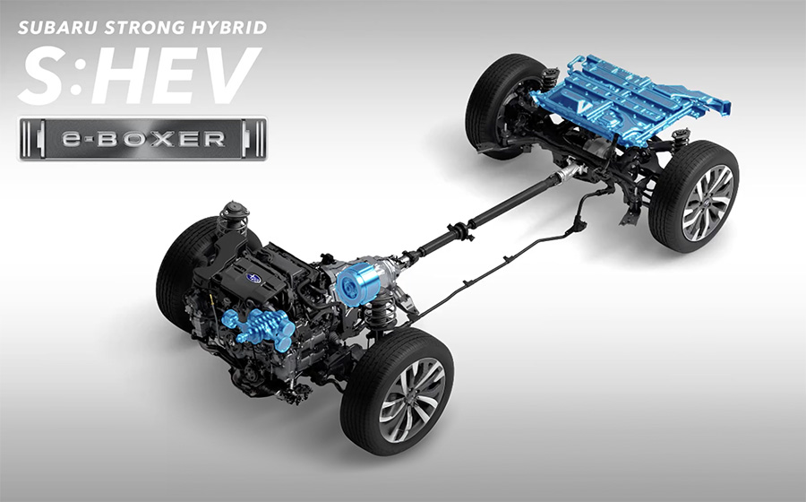 เครื่องยนต์รหัส FB25 เบนซิน 4 สูบนอน BOXER ขนาด 2.5 ลิตร 2,498 ซีซี กระบอกสูบ x ช่วงชัก : 94.0 × 90.0 มิลลิเมตร กำลังอัด 11.9 : 1 พร้อมระบบแปรผันวาล์ว Active Valve Control System (AVCS) กำลังสูงสุด 160 แรงม้า (PS) ที่ 5,600 รอบ/นาที แรงบิดสูงสุด 209 นิวตันเมตร ที่ 4,000 – 4,400 รอบ/นาที ทำงานร่วมกับมอเตอร์ไฟฟ้า AC Synchronous Motor กำลังสูงสุด 120 แรงม้า (PS) แรงบิดสูงสุด 270 นิวตันเมตร พ่วงด้วยแบตเตอรี่ Lithium-ion ความจุ 1.1 kWh จับคู่กับเกียร์อัตโนมัติ E-CVT ขับเคลื่อน 4 ล้อ Subaru Symmetrical All-Wheel Drive พร้อม X-MODE
