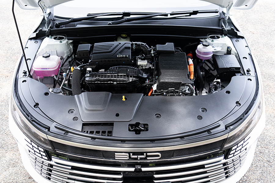 เครื่องยนต์รหัส BYD472QC เบนซิน 4 สูบ DOHC 16 วาล์ว ขนาด 1.5 ลิตร 1,498 ซีซี จุดระเบิดแบบ Atkinson Cycle อัตราส่วนกําลังอัด 15.5 : 1 กำลังสูงสุด 72 กิโลวัตต์ หรือ 98 แรงม้า (PS) แรงบิดสูงสุด 122 นิวตันเมตร (12.44 ก.ก.-ม.) รองรับน้ำมันเชื้อเพลิงสูงสุด Gasohol E20