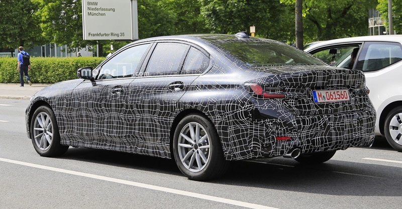 All NEW BMW 3-Series จะมีการขยายระยะฐานล้อ เพื่อเพิ่มเนื้อที่ห้องโดยสารตอนหลัง และเมื่อมองมุมท้ายเฉียง ก็พบว่า BMW ได้เกลาสัดส่วนบั้นท้ายให้มีเส้นสายโคงมน ดูเพรียวขึ้นและดูยาวขึ้นกว่าเดิมเล็กน้อย