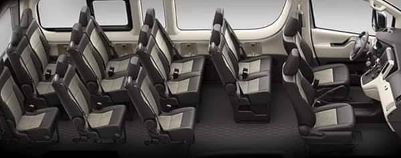 ล่าสุดมีภาพภายในห้องโดยสารหลุดออกมาแล้วก่อนเปิดตัวอย่างเป็นทางการ เบาะนั่งแบบ 5 แถว 13 ที่นั่ง พร้อมเข็มขัดแบบ 3 จุดทุกตำแหน่ง เบาะนั่งสีทูโทน พร้อมกับแดชบอร์ดหน้าดีไซน์ใหม่ พวงมาลัยยกมาจาก Toyota Innova ใหม่ ประตูคู่หน้าบานใหญ่ พร้อมกระจกแบบโอเปร่า ช่วยให้ทัศนวิสัยกว้างขึ้น นี่คือจุดเปลี่ยนจากรุ่นที่แล้วอย่างเห็นได้ชัด