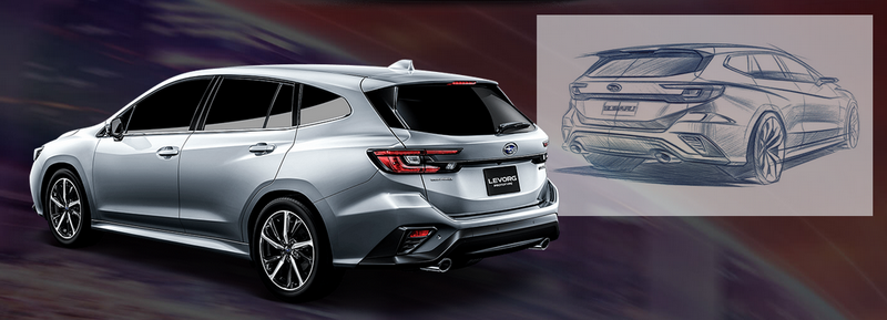 แม้ว่ารูปทรงของ Levorg Prototype จะมีสัดส่วนหรือลักษณะโดยรวมคล้ายกับรถรุ่นที่แล้ว ใช้ธีมการออกแบบ Dynamic x Solid ที่เน้นสันเหลี่ยมให้ดูแข็งแกร่ง แต่ใช้ความอ่อนช้อยแซมเข้าไปตามจุดต่างๆเพื่อให้รถดูคมและปราดเปรียว มีการออกแบบให้ดูมีความแตกต่างจากรถรุ่นอื่นๆของตระกูล โดยเฉพาะด้านหน้าของรถ กับไฟหน้าทรงดุเหมือนตาเหยี่ยวกับกระจังหน้า 6 เหลี่ยมขนาดใหญ่ ส่วนด้านท้ายรถ ก็มีไฟท้ายทรงวงเล็บ ที่ไม่สวยในรุ่นอื่น แต่พอมาเป็น Levorg ทีมออกแบบใช้วิธีลดความสูง ให้ดูเปรียว เข้ากับเส้นโครเมียมที่คาดเหนือช่องป้ายทะเบียน ทำให้ดูเข้าตามากกว่าไฟท้ายวงเล็บของ Forester และ XV