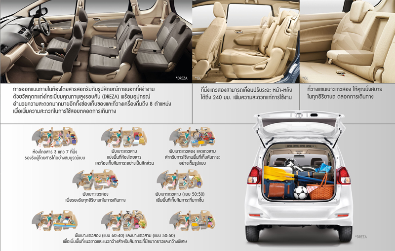 ยังคงเป็นจุดเด่นของรุ่นนี้ โดยเบาะนั่งแถวที่ 2 จะแยกปรับอิสระ 60 : 40