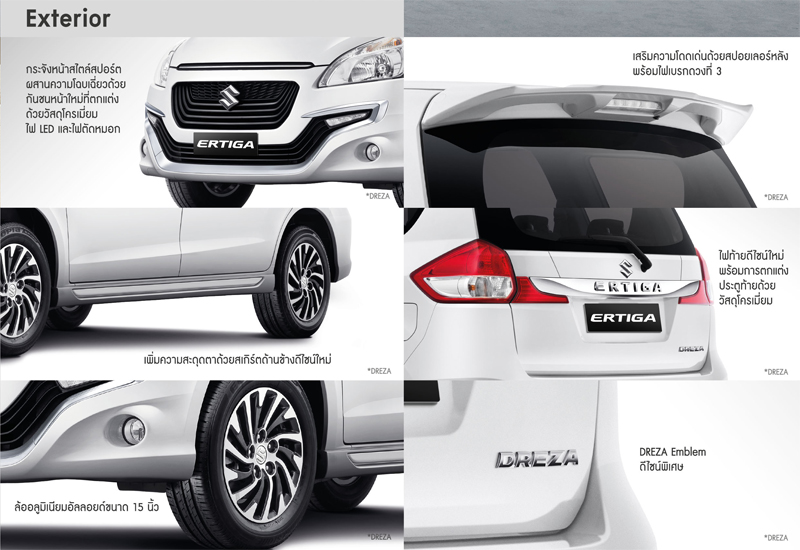ภายนอกของรุ่น Dreza จะได้กันชนหน้าและกันชนหลังแบบสปอร์ต พร้อมสเกิร์ตข้าง