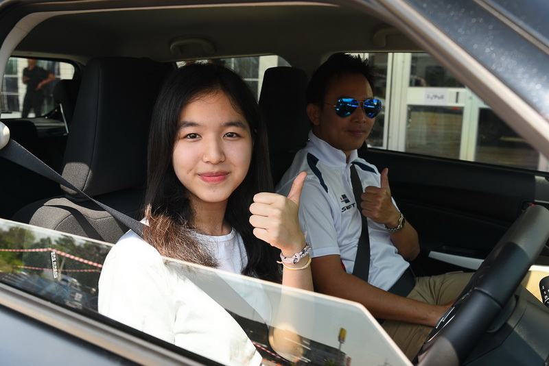 เราให้ผู้เข้าร่วมงานทุกท่านได้มีโอกาสขับรถตามกันไปรอบสนาม โดยที่มี Instructor มืออาชีพคอยอธิบายการเข้าโค้งกับความเร็วที่ควรใช้ในช่วงต่างๆก่อนหนึ่งรอบ จากนั้นจึงขับกลับเข้ามาพิท เพื่อตั้งแถวเตรียมตัวเข้าสู่การทดสอบจริง ซึ่งผู้กำกับสนามจะปล่อยรถให้วิ่งเพียงครั้งละ 1 คัน เพื่อลดความกดดันกรณีคันหน้ากับคันหลังมีทักษะการขับขี่ต่างกัน และลดโอกาสที่จะเกิดอุบัติเหตุ