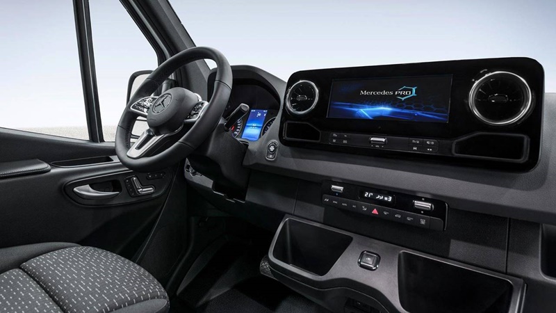 ภายในห้องโดยสาร All NEW Mercedes-Benz Sprinter จะมาเปลี่ยนคำนิยามใหม่ของรถตู้ขนาดใหญ่ ด้วยการเปลี่ยนแนวทางการออกแบบภายในที่ดูดีใกล้เคียงกับรถยนต์นั่งมากขึ้น ถึงแม้ว่าอาจจะไม่ได้ประดับด้วยวัสดุหรูหราราคาแพงเหมือนรถหรู แต่แผนกรถยนต์เพื่อการพาณิชย์ของ Mercedes-Benz ก็พยายามใส่ใจในรายละเอียดเพื่อลดความตึงเครียดขณะขับขี่ ได้แก่