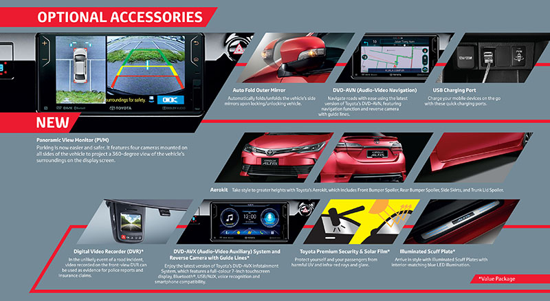 โดย Package นี้ลูกค้าที่ใช้ Corolla Altis อยู่ ก็สามารถสั่งซื้อ ให้ติดตั้งเพิ่มเติมได้ในราคา 6,137 ริงกิต (ประมาณ 48,000 บาท)