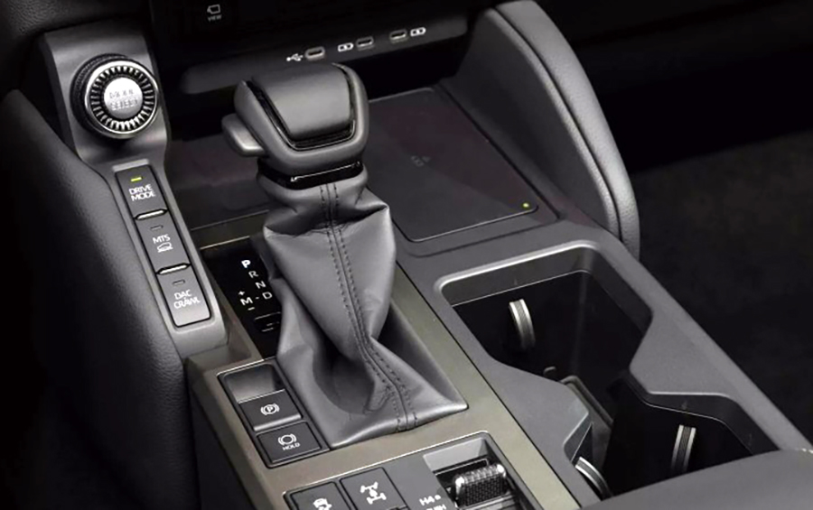 นอกจากนี้ ภาพร่างที่ถูกเผยออกมาก่อนหน้านี้ ยังเผยให้เห็นถึงดีไซน์ของแผงคอนโซลกลาง ซึ่งจะเป็นตำแหน่งติดตั้งคันเกียร์หุ้มด้วยวัสดุหนัง แบบเดียวกับ Toyota Land Cruiser 250 รวมถึงแผงควบคุมฟังก์ชั่นต่างๆ ที่เกียวข้องกับระบบขับเคลื่อน ตลอดจนเบรกมือ ที่เปลี่ยนจากก้านคันโยกธรรมดา เป็นแบบสวิตช์ไฟฟ้า พร้อมระบบ Auto Brake Hold ตามสมัยนิยม