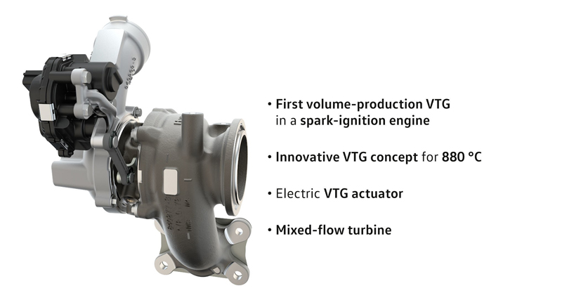 แบบ Miller Cycle มีกำลังอัดสูง 12.5 : 1 เทอร์โบชาร์จพร้อมระบบกังหันตัวแปร VTG